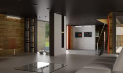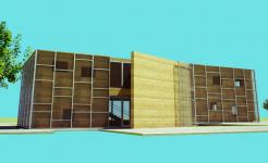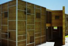 The summer house is a single family residence. It is proposed for a warm resort area. The wooden construction is supported by metal mesh. The layered facade reveals an untraditional casement. There are Glass-metal shutters all around the wooden construction, plus invisible glass shutters from the inside. The pool on one side of the building can be integrated with an interior in a warm weather.