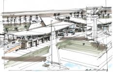 The project stages area composed of 3 zones as Boat Slip Area, Social Area and Administrative Area. Since the task was to plan the functions in separate buildings, the areas between the buildings are designed as outdoor spaces with landscape elements integrating the buildings. The architectural style of the marina is designed with reference to Mediterranean architectural features articulating open, semi-open and enclosed spaces with a hierarchy. The project’s sculptural roofs and canopies refer to the sailing boats instead of a historical driven architecture. The roofs and canopies cover the buildings as a secondary skin forming the project’s character. The social building at the main entrance gently guides the pedestrians into the shopping arcade and from there to the meeting place at the seaside. Orientation of buildings and canopies are planned considering the climate of Mersin and also to optimize shading.