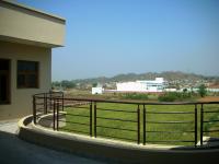 In plan, the house is divided into two portions. The main portion which is meant for the owners has been designed as a duplex unit. It accommodates a drawing room, lounge-cum-dining, kitchen and two bed rooms at the ground floor level and a lounge and two more bedrooms at upper level. These two floors are linked physically and visually through a staircase which is accommodated in a double-height lobby. Two large terraces have been created at the upper level. The front terrace faces the south-east side while the rear terrace falls on north-west side. These are the ideal places for sit-outs in a fair weather and can be used depending upon the season and the direction of the sun. Both these terraces afford spectacular views of Shivalik hills which fall on the north-east side.