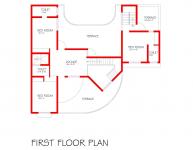 The other portion of the house is an annexe for the attendants. It is also duplex unit with independent staircase. The ground floor houses a car porch, implement store and one room with toilet, while the upper floor accommodates another bed room and a small independent terrace on the north side. It is a sort of mini house within a big house with full privacy to its occupants.