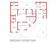 Shivalik House is located on the foothills of Shivalik Ranges in the Mohali District of Punjab. It is a single-family duplex house built on a plot of 440 square yards. The plot is unusually square in shape which inspired the architect to find an unusual solution. The main challenge was to carve out open courts or negative spaces at appropriate places rather than to design the built-up portion or positive spaces. One large open space has been created at the front that is east and south-east sides. A small rear court has been carved out on the north-west side and it is enclosed by the built-up mass on three sides. These courts have been characterized by the sweeping curves of the built-form around them.