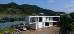 The Butterfly House is located near green hills, in the country of Gapyeong (50 km north east from Seoul), which cultural and environmental context has deeply influenced the concept of the building.