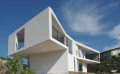 The house is based on two units, one for a family, the other for grandparents, and his figure is defined by large panoramic terraces, shaped like the wings of a butterfly, open through the landscape.