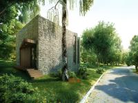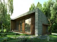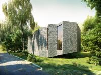 The villa is located in the resort area Priboy near Varna and it is designed to correspond with the surrounded rich woodland vegetation. The building is designed with two above ground floors and one underground floor with smaller units of area. The day zone is found on the first floor and the night zone with two bedrooms occupies the second floor. An interesting accent of the plan design is the double height of the living area and the fireplace hanging in the centre of this area. The erection of part of the villa above the ground and the thick stone parts of the building create a feeling of heaviness and protection. The interior made of glass and wood communicates with the forest. A roof with a negative slope maintains a balance of the volumes.