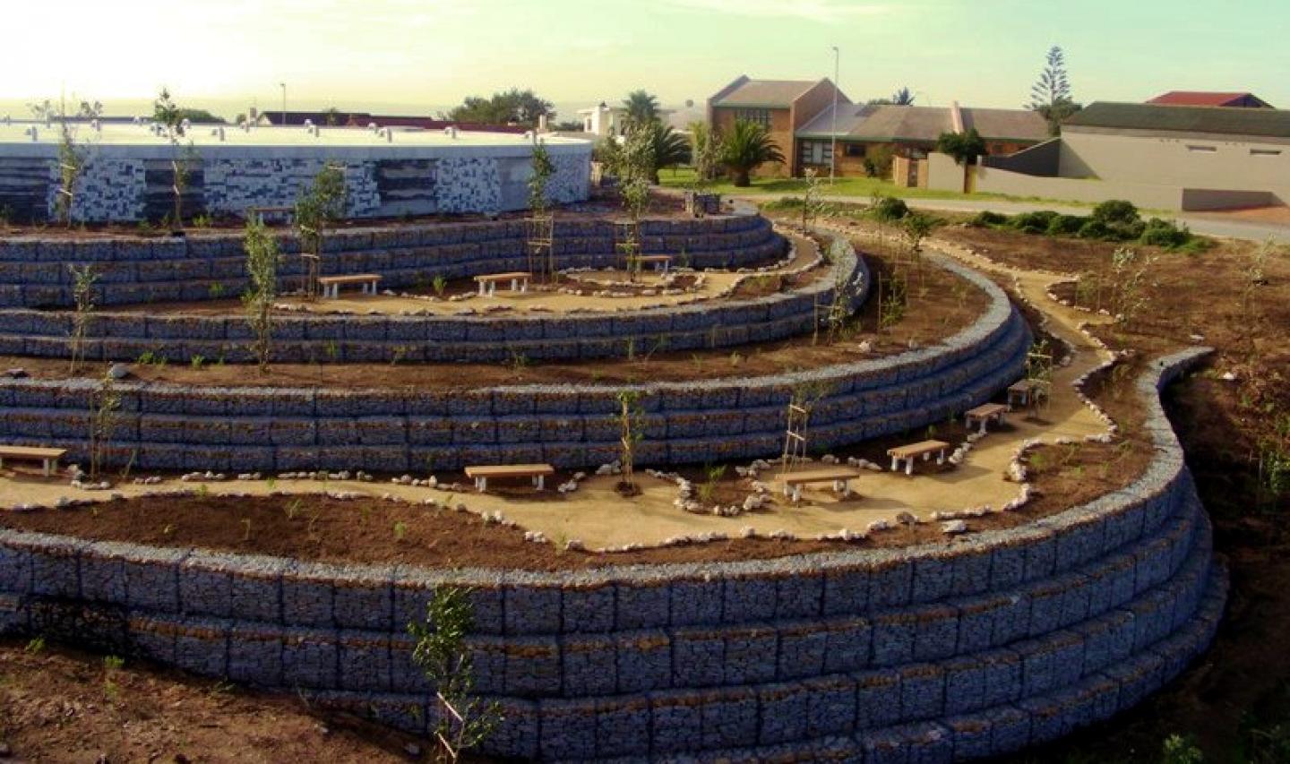 The main philosophy underpinning my proposal was “Context” and “Earthworks as Art “. Utilising the topography of the site to my advantage, terraces were placed in organic shapes; enfolding the reservoir. The terraces will be constructed and supported by using gabions (metal baskets filled with local stone), which will form the backbone as well as mold the canvas for the natural vegetation to swathe the visual impact of the reservoir.