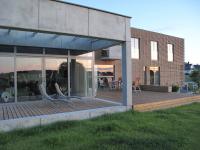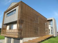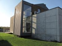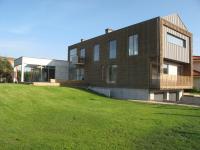 Main thought was to create universal form that resists passing time. Only simple rectangular shapes were used, so as rough materials for elevation finishing. Exterior uses natural colours of concrete, wood, and steel. The basis for the form was traditional modernism, converted to the modern expectations.