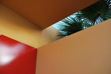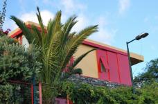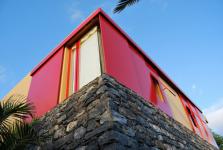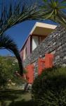 This house is located in a sinuous land and a very sharp slope Fantastic sea view, from sunrise to sunset. Southeast winds. View on Funchal bay, on one side and on the Deserters Islands on the other side. Next door there is another piece of land with a private house and on the other side gardens. To have the biggest area garden as possible and as the house is next to a public park we design the building as far as possible of the public garden area. You can hardly see the house except for the first floor, that´s the only part you can really see because the bedroom area is hidden by high retaining walls.