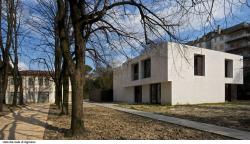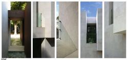 The house is built around a large room illuminated from occupying the entire height of the building which is located in the stairwell. The ground floor houses the living area. The sleeping area, first floor, features rooms structured as islands independent, distributed by corridors that become privileged points of view of the park, a walkway divides the rooms of the parents of those children. In the basement, the rooms are overlooking a patio on two levels. The land is changed to form a natural water slide, sloping toward the atrium, bringing light and ventilation to the spaces that are at this level. The building from the outside is a compact, hermetic, open house, home. The rooms are at the same time in relation to each other and with the park, through the double height, large internal openings which punctuate the rooms, large windows and emptying that define the arcades. In particular the first floor, the depth of the openings in the wall emphasizes the character of open squares on the park surrounding the house. The house is entirely clad in stone from Istria with sandblasted finish. The relationship with the natural landscape is enhanced by the use Cor-Ten steel for the construction of exterior doors, panels lining the garage and new entrance to the house, whose dark play affinity with nature and to contrast with the whiteness of the stone.