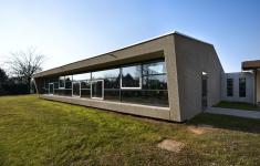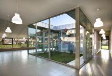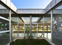 The overall design of the school campus for children is primarily intended for an adjustment and regulatory plexus existing plant and the construction of a building with a refectory and a nursery. The expansion project has a plant that grows in the east-west route that delivers an offering at the same time it expands into new areas of the project: the refectory, the subject of this post, and the nursery of future construction. The floor plan is intended to canteens and is marked from south to north in three bands of distinct environments: the place for dining that opens onto the garden with a large window, a kitchenette, a courtyard and an environment lunch for staff, service spaces. The openings are located on the north and south sides, within the space defined by the extension of the seven perimeter vertically, and on the cover and the curb/ledge, horizontally. The patio helps bring air and light in the central part of the building. The nature of the surrounding park and the weather events enter the building through the glass and the inner courtyard, allowing students to observe climate change and color due to the passing and changing of the seasons, turning this way even in the lunch a didactic moment, discovery and learning. The finishing of the concrete wash exterior provides a rough and rugged terrain that links the building to the park in which it is inserted.