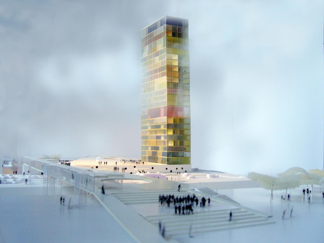 The Tower creates the maximum impact with the minimum consumption of site area. We liberate 95% of the project site for public areas, as we leave it as forest. A big urban plaza, an orthogonal park, and a big platform to access the trains will complete the design of the area.