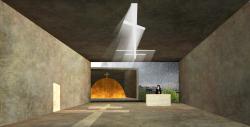 The golden dome required in the program is embedded in the black concrete shape which assume its contemporariness while being very respectful towards the Alma Palace facade  in the background.