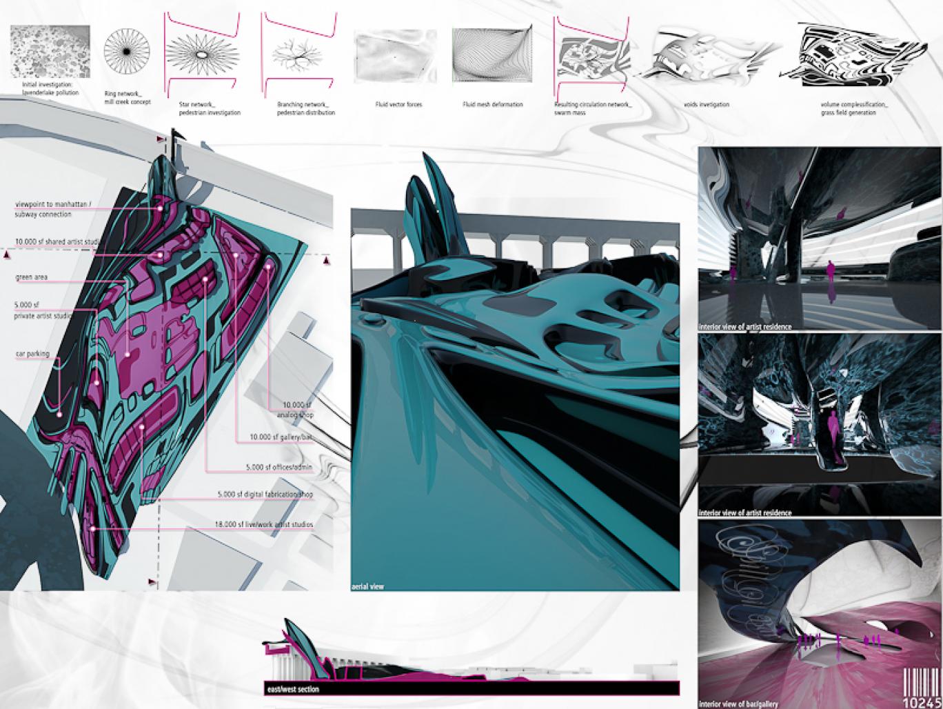 the toxic body is treated thru a fluid dynamics approach, that modulates the space as a fluid matter in order to create the conditions for the formation of a social movement embedding art and environmental issues. creating, lobbying, activism, education, interaction, gathering, organizing are the activities that take place here. the fluid matter behaves like oil spill body: viscosities, frictions, steady matter, turbulent areas, compressible spaces shape the image of a unique hydrocarbon architecture optimized to create the conditions for the settlement of a unique social movement.