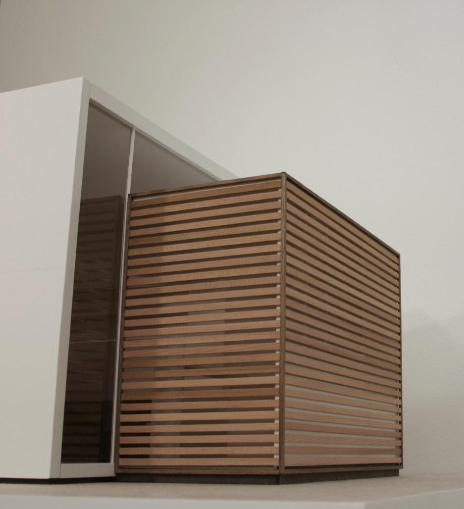 The idea of this prototype is to create a prefab 30 m2 house module for a single person, like students or old people. This module can be built as a single unit, or as an agrupation. The main idea is based on use the 3.2 m tall to create an storage modul that let all furniture to desappear depending of the use of the house in each moment. This big storage step create also a separation between more public or private areas. Under the bathroom, and connected from outside, we find all technical instalations, so it is not necessary to work from inside, with the advantage that it has for the inhabitant.