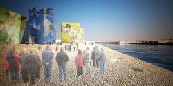 Two new wavebreakers signify the new port. The northern, almost perpendicular to the shore, stands for the future, hosting all the new terminals, start of the new journeys in tha Aegean. The second wavebreaker is parallel to Makronisos and stands for the past, the memory of the place. The pedestrians that walk along it experience the painful past of the exile island and the earth memories of the city itself – inside cavities are placed the 59 basic minerals of the place – a minor geological “museum”.