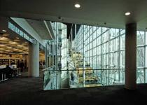 A major renovation and addition to the Winnipeg Centennial Library is proposed to revitalize the existing 1970’s building. Changes include reorganization and expansion of the collection, reorganization of the circulation systems, and new social spaces. The existing library consists largely of independent floor plates isolated from one another. In order to foster a greater sense of community within the library, a large terraced reading room that interconnects the existing floor plates and a new fourth floor was developed along the edge of the building. The terraces complement adjacent functional spaces, and an integrated staircase provides convenient circulation between the floors. At the top of the terraced reading room, (presently the roof), a new grand space houses the Library’s reference collections. Because the existing library is largely introverted and lacks any strong connection to the exterior, the entire edge of the terraced reading room is glazed, opening up the library to views of the adjacent park and city streets. At the same time, the glazed wall allows the life of the library to contribute to the life of the park and street beyond.