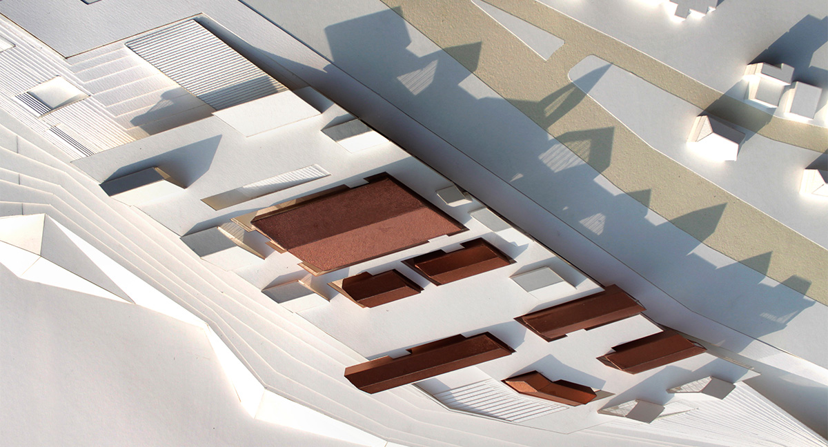 In order to express the landscape concept design process; after picking the site boundary and changing its geometry according to the city’s context-related qualities, they meshed the new-created site surface and due to the level differentials in the site topography, the landscape stairs are designed all over the site. Some open-space amphitheaters were designed through intersecting voids with the landscape stairs too. For designing the masses and placing them on the project site, first of all, they picked a footprint of the city’s history, and after fitting the programed functions into the designed forms; they turned the two-dimensional into three-dimensional architectural volumes and modified them according to the functional requirements. After all, they potentially unified the forms and designed landscape in order to reach to a single architectural unit. Instead of considering the bridge as an outsider element, they considered it as a part of the landscape in order to create a gateway for walking/cycling from the existing island near the project site.