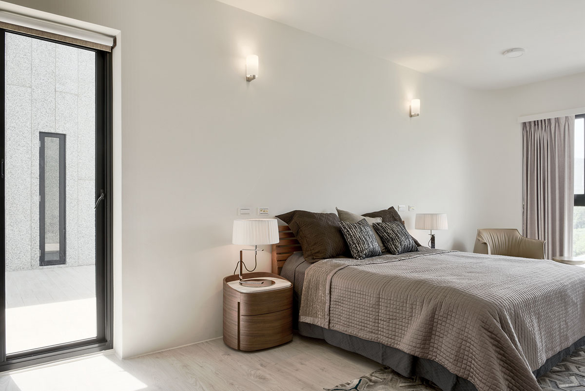 Named House S, the 416-square-metre residence is located on a hillside of Hsinchu province and faces a beautiful scenery of green hills, which is taken into consideration for extending outdoor terraces.