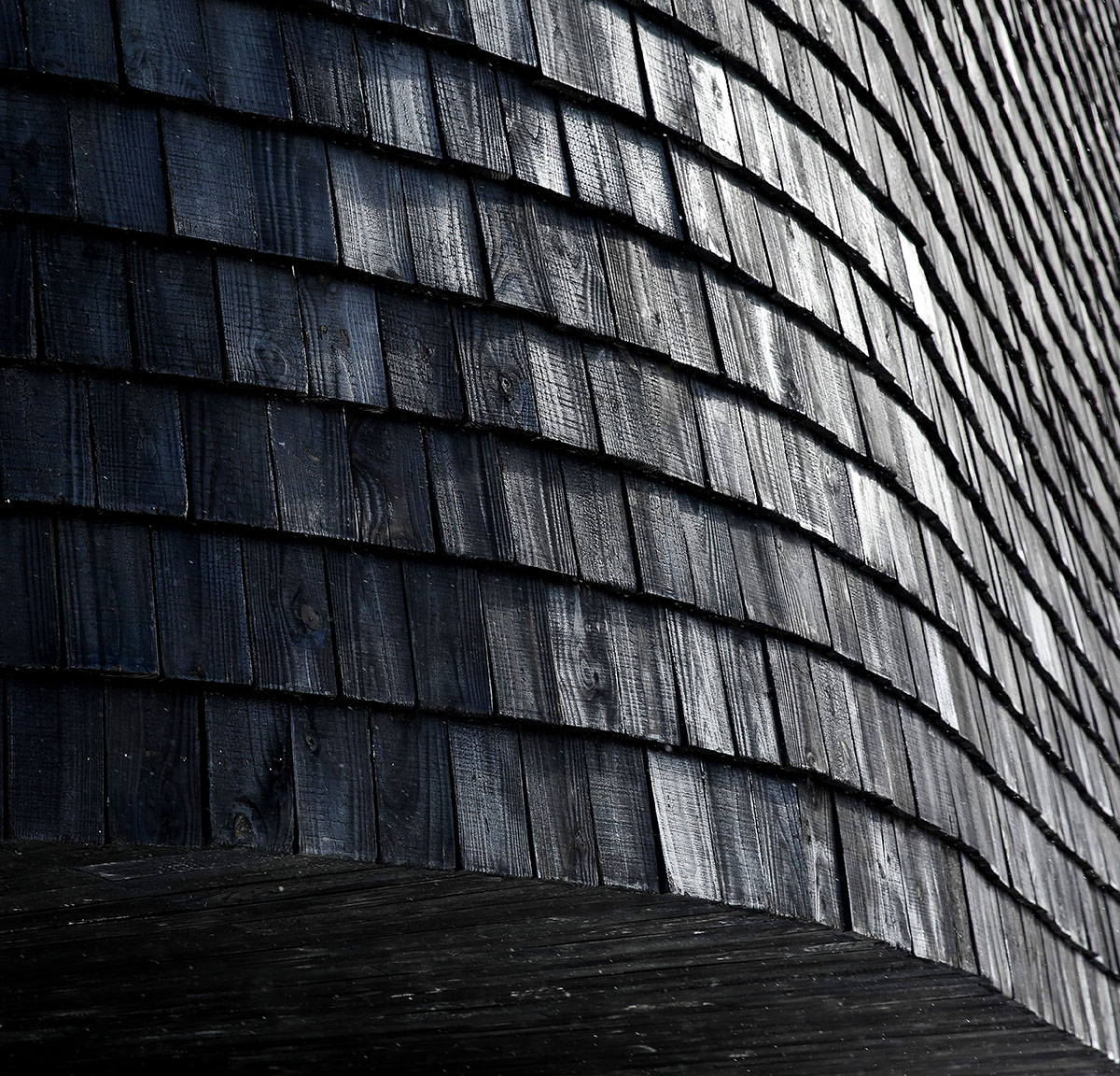 When visitors come closer, they can see the reflection on the charred cedar shingles (Shou-Sugi-Ban) becoming faintly perceptible - even turns silvery with the changing angle of sunlight.