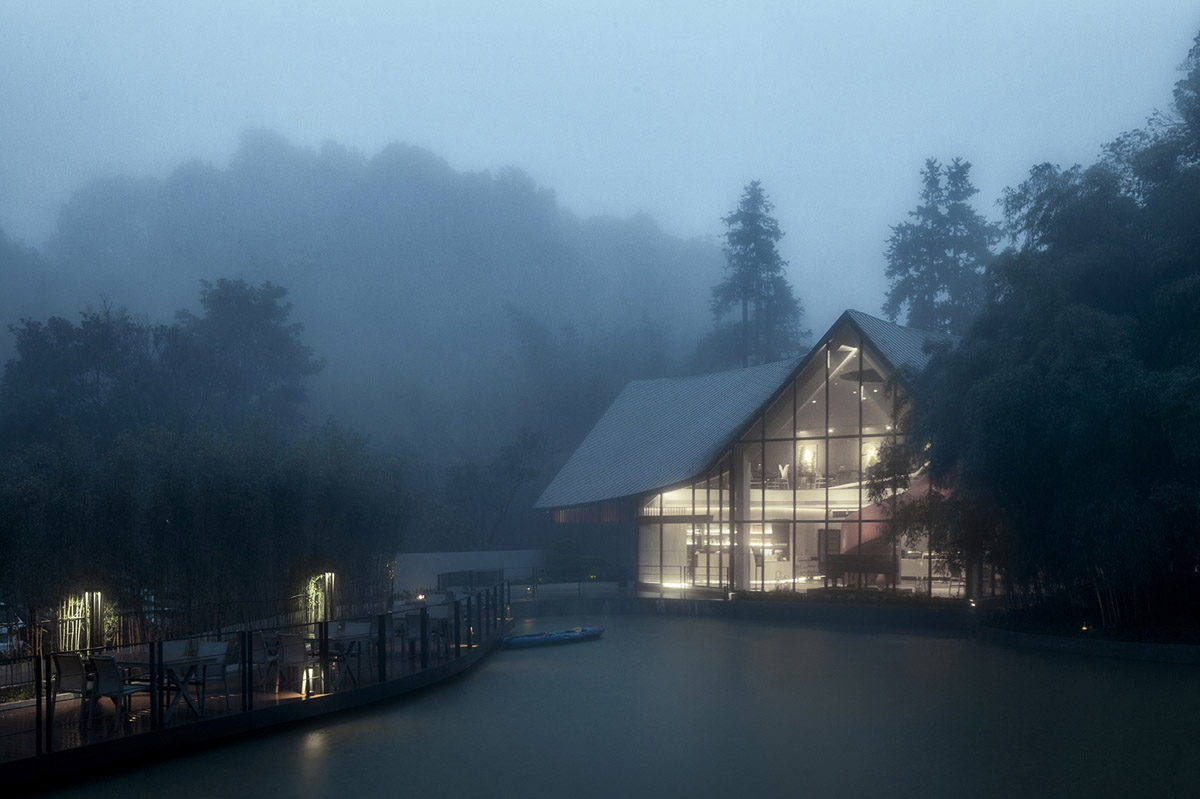 Covering a total of 353-square-metre area, the restaurant is located in a valley 800 meters above sea level in Nankun Mountain National Forest Park.