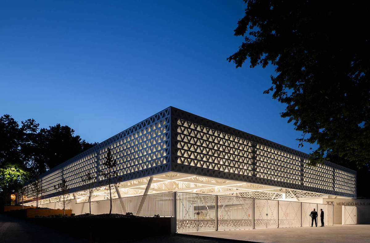 By the time of the current intervention the space had proven obsolete and lacked capacity to attract consumers. Architect Rui Mendes Ribeiro has covered the marketplace with a perforated canopy that shades the market square.