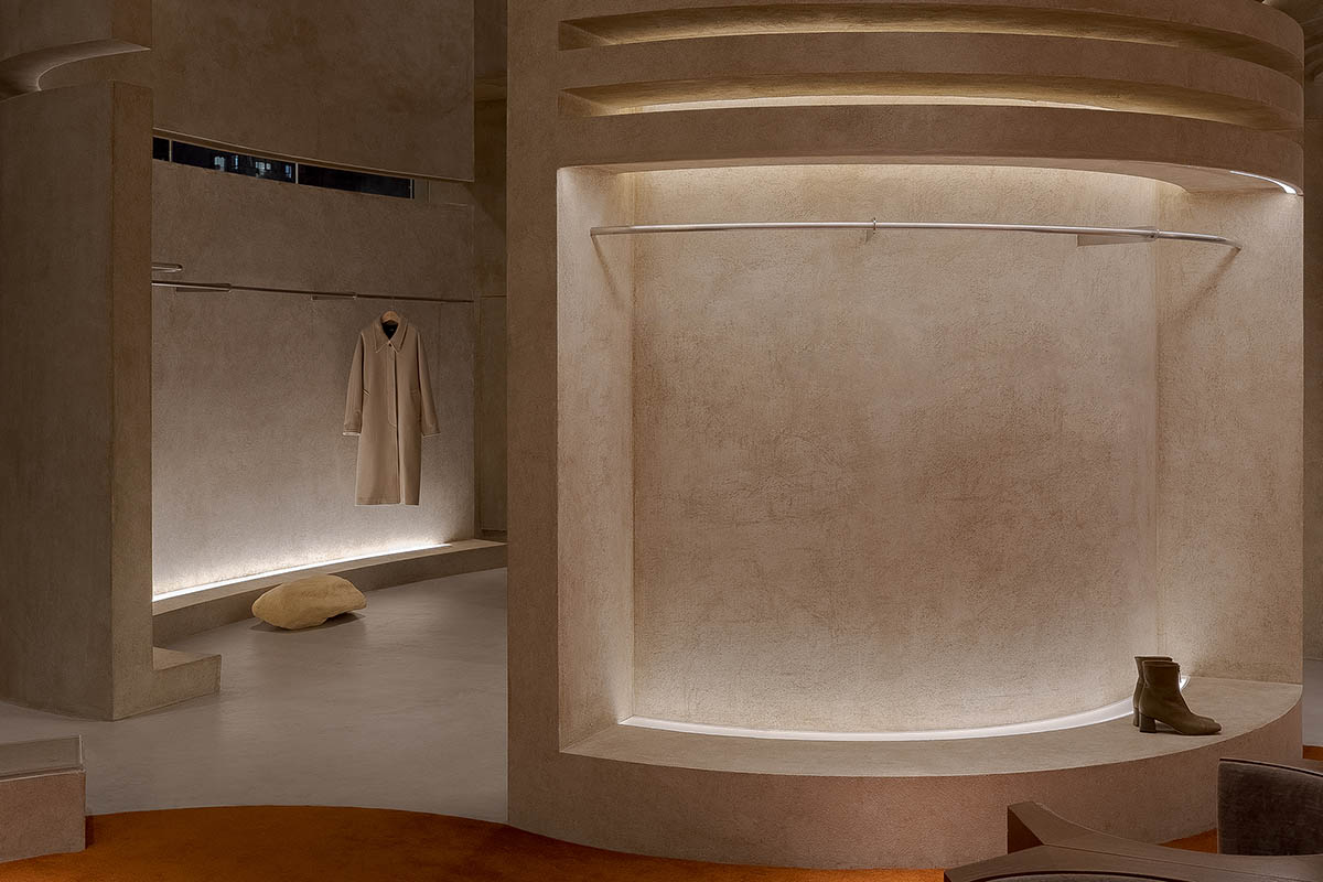 Soft curves, rounded edges, earth-toned display areas become the main elements that are the basis of functions and layering of space. The interior space presents a continuous flow while customers moving inside.